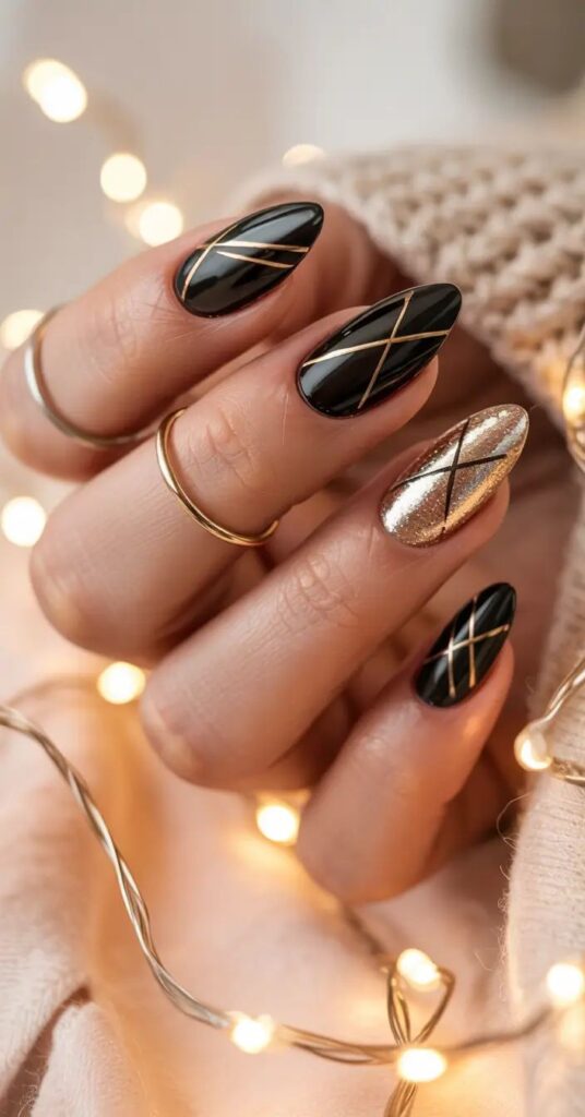 Το μαύρο στα νύχια είναι από μόνο του classy. Με glitter όμως – είτε σε ασημί είτε σε multicolor – γίνεται απόλυτα πρωτοχρονιάτικο. Είναι η τέλεια επιλογή αν θες να πετύχεις ένα sophisticated αποτέλεσμα, χωρίς να “φωνάζει” χρώμα.