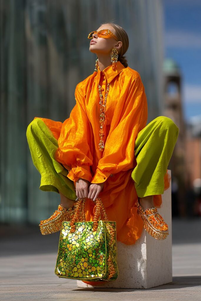 - Αξεσουάρ: Τσάντες και παπούτσια από ημιδιαφανές plexiglass σε έντονες αποχρώσεις.