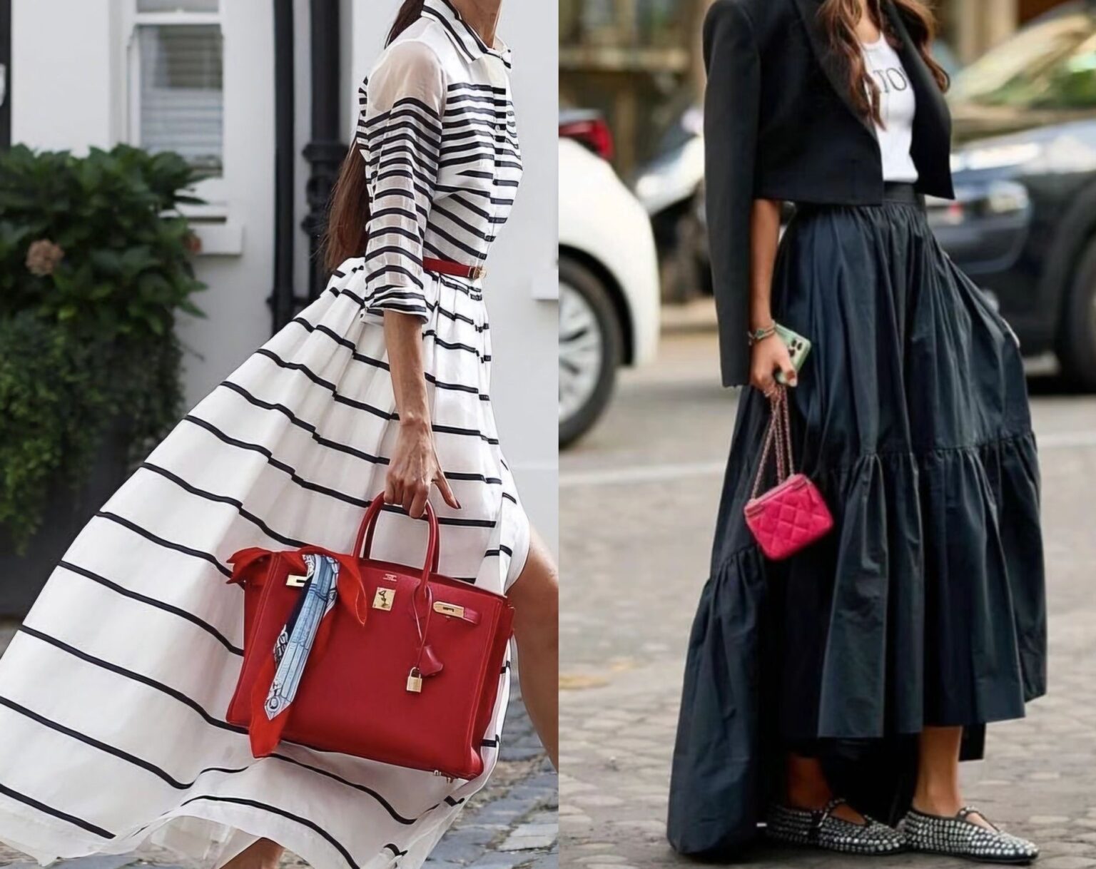 - Αξεσουάρ: Χειροποίητες πλεκτές τσάντες και σανδάλια με ψάθινες λεπτομέρειες.