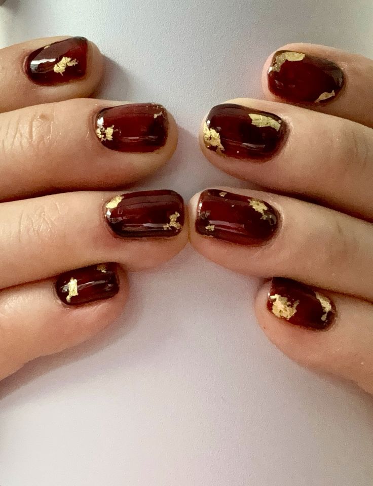 Το αποτέλεσμα είναι μοναδικό: νύχια που δείχνουν σαν να φωτίζονται από μέσα, σαν αναμμένα κάρβουνα μέσα στη “χρυσή ώρα” του φθινοπώρου. Είναι το μανικιούρ που συνδυάζει κομψότητα, βάθος και μια σχεδόν μαγική λάμψη που δεν περνά απαρατήρητη.