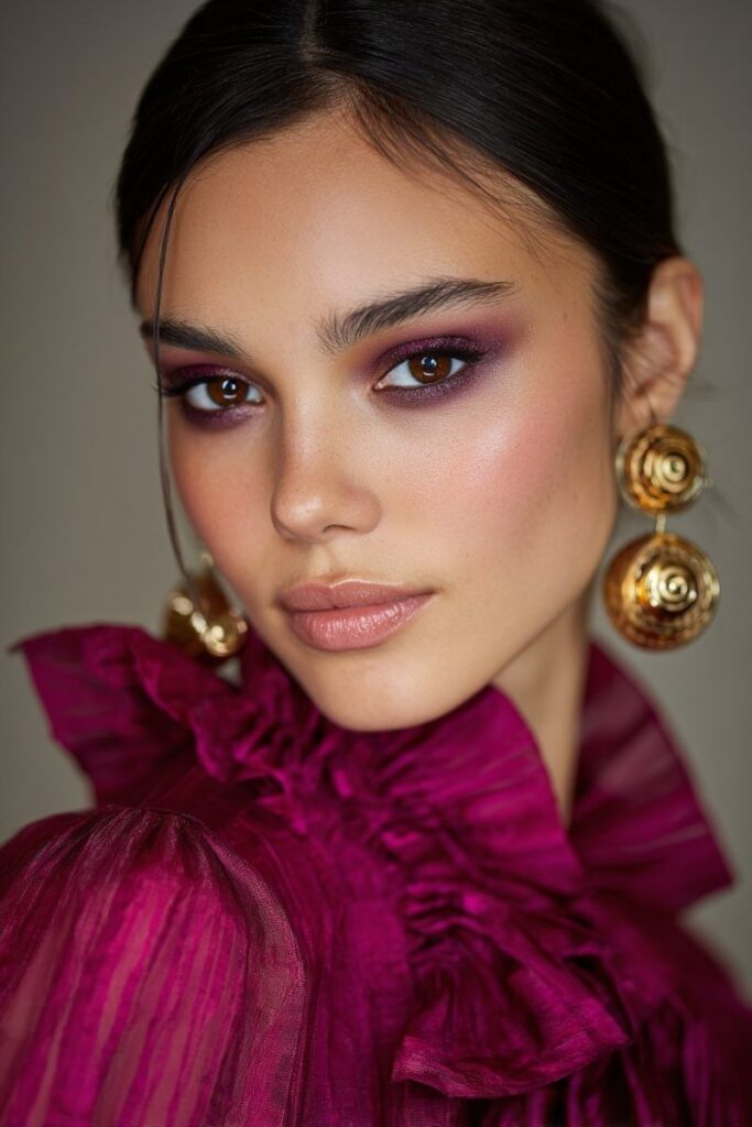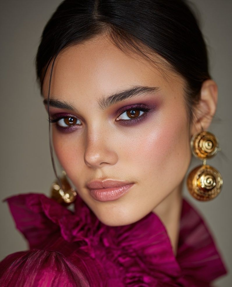 Οι mauve αποχρώσεις είναι η πιο sophisticated επιλογή για pink outfits. Το μυστικό είναι ο συνδυασμός ροζ και μωβ τόνων που δημιουργεί αρμονία, χωρίς υπερβολή. Ιδανικό για όσες θέλουν κάτι πιο “ενήλικο” και elegant.Μπορείς να συνδυάσεις matte mauve σκιά με λίγο soft brown για contour στο βλέφαρο. Ένα ροζ-nude κραγιόν θα ολοκληρώσει τέλεια το αποτέλεσμα, δίνοντας ένα polished, μοντέρνο αποτέλεσμα.
