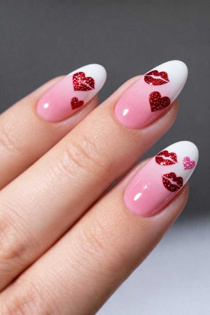 Ένα γαλλικό μανικιούρ όπου η άκρη (το tip) δεν είναι μια ευθεία γραμμή, αλλά το πάνω μέρος μιας καρδιάς.