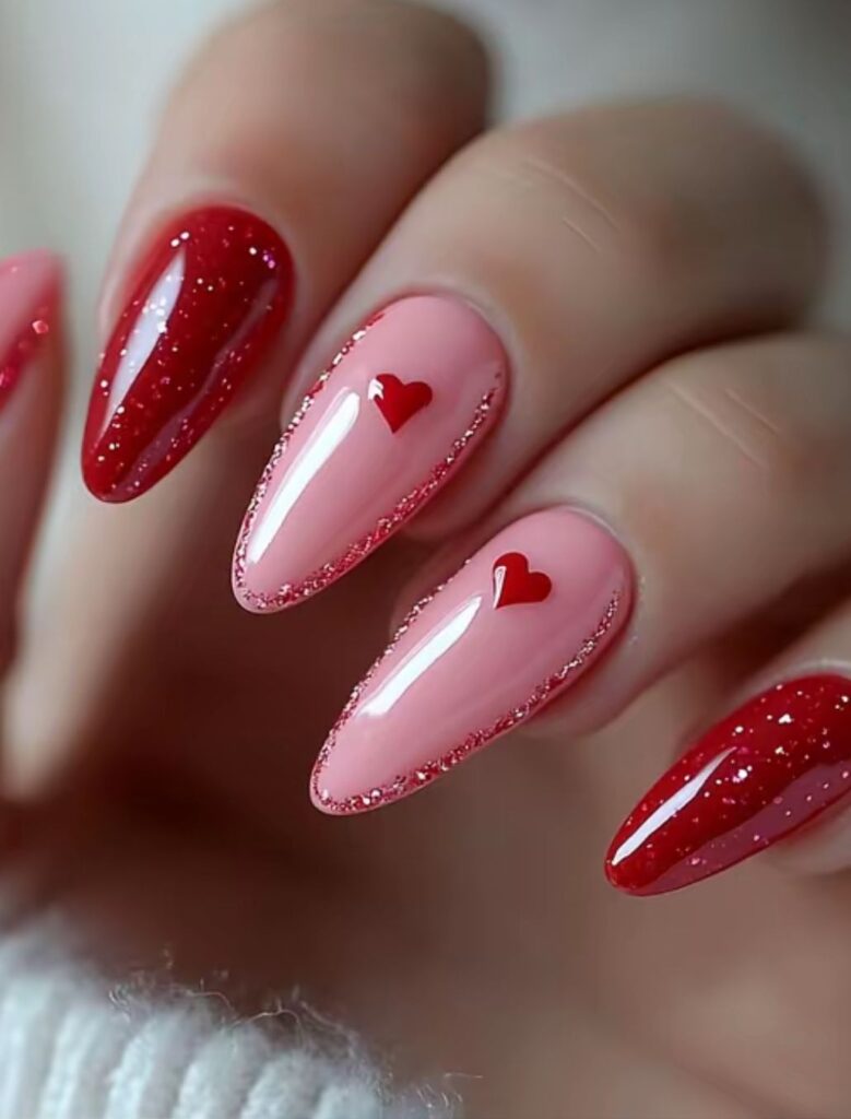 Κόκκινη βάση με ροζ tips (ή το αντίστροφο).