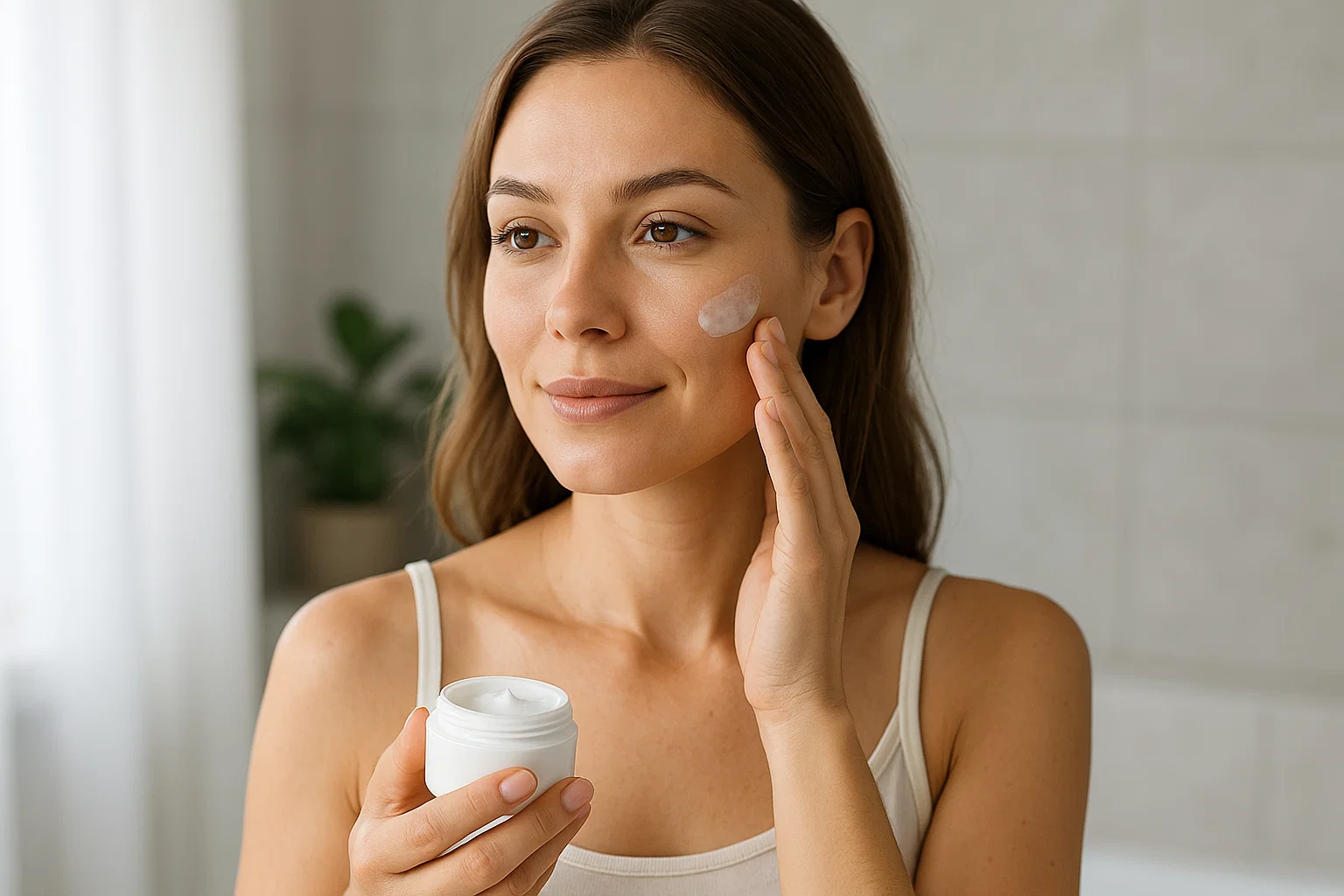 3. Ενυδατική κρέμα:Προτίμησε φόρμουλα με υαλουρονικό ή πεπτίδια για ενυδάτωση που διαρκεί όλη μέρα.