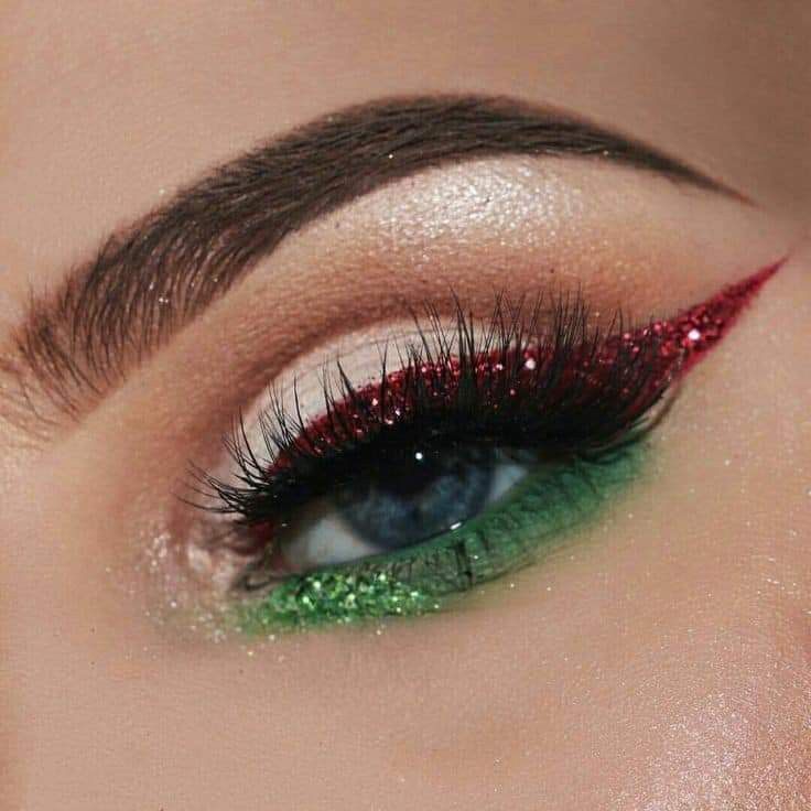 Τα Χριστούγεννα 2025 αγαπούν πολύ και το monochromatic πράσινο look. Πράσινη σκιά, απαλή καφέ-πράσινη σκίαση στο κάτω βλέφαρο και καλοχτενισμένα φρύδια δημιουργούν ένα αποτέλεσμα που δείχνει fashion-forward αλλά απόλυτα κομψό. Το μυστικό εδώ είναι το σωστό blending και η ισορροπία με το υπόλοιπο μακιγιάζ.