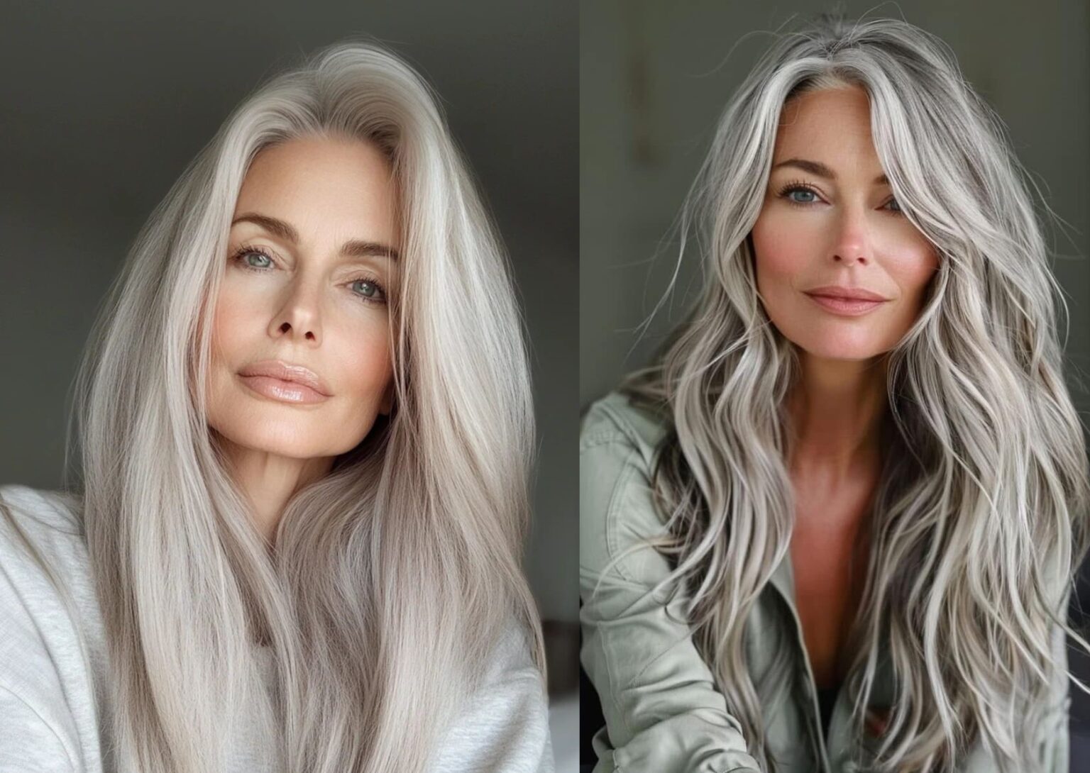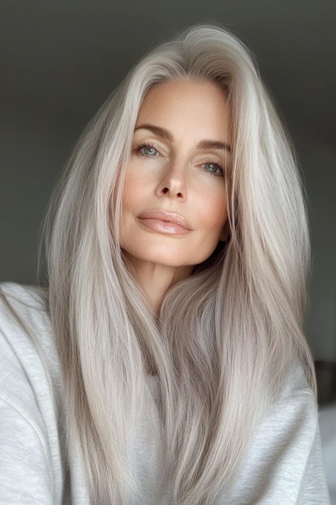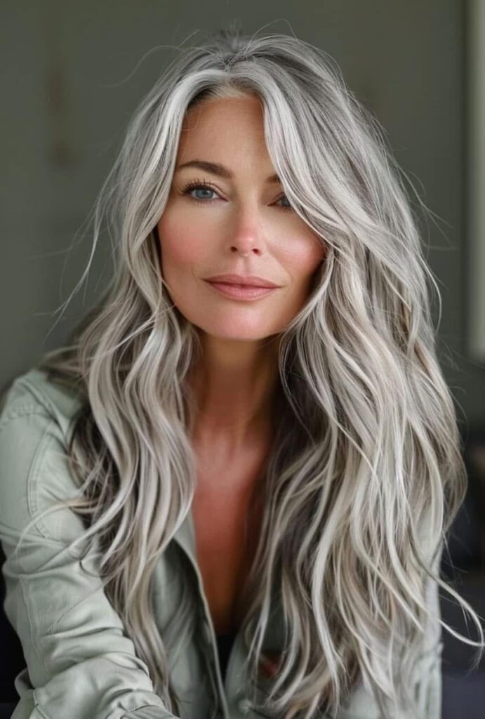 Η εποχή που τα γκρίζα μαλλιά θεωρούνταν σημάδι αμέλειας έχει παρέλθει οριστικά. Σήμερα, τα μακριά ασημένια μαλλιά αντιμετωπίζονται ως «φυσικό μετάξι». Η καθαρότητα του λευκού, η λάμψη του ασημί και το βάθος του γκρίζου δημιουργούν μια παλέτα που καμία τεχνητή βαφή δεν μπορεί να αντιγράψει απόλυτα.