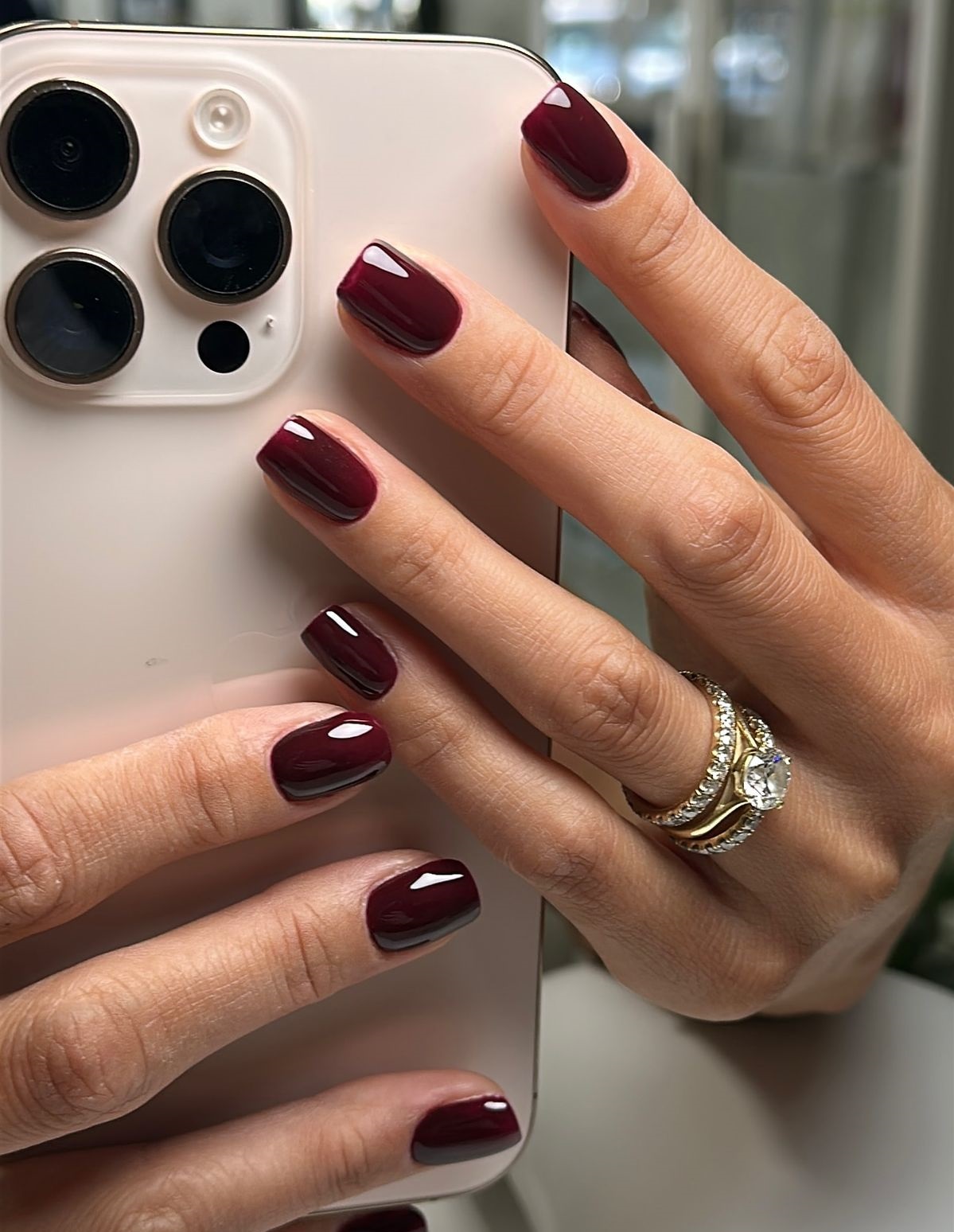 Το βαθύ μπορντό παραμένει το πιο διαχρονικό φθινοπωρινό χρώμα. Θηλυκό, κομψό και ζεστό, χαρίζει στα χέρια μια αίσθηση πολυτέλειας που δεν χρειάζεται τίποτα παραπάνω. Μπορείς να το επιλέξεις σε glossy ή matte φινίρισμα – και στις δύο περιπτώσεις δείχνει classic chic.