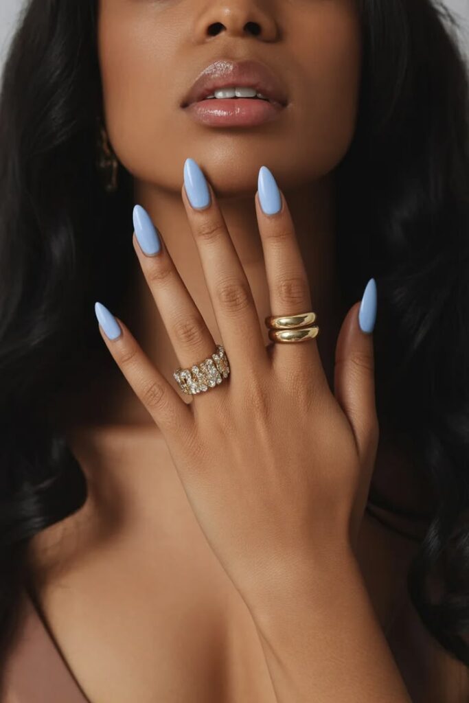 - Cobalt blue & chrome: Το βαθύ μπλε του κοβαλτίου είναι διαχρονικό, αλλά το 2026 το φοράμε με μια mirror-chrome επικάλυψη. Στις σκούρες επιδερμίδες, αυτό το χρώμα δείχνει βασιλικό και υπερπολυτελές.