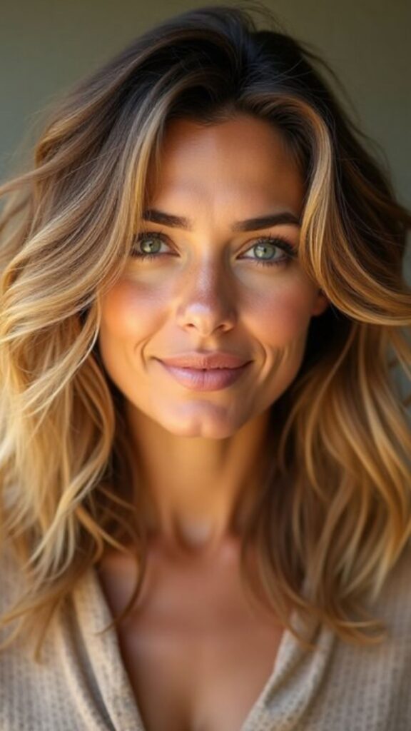 Αν δεν θέλετε να αποχωριστείτε το μήκος των μαλλιών σας, το κούρεμα «πεταλούδα» είναι η ιδανική λύση. Βασίζεται σε έντονα επίπεδα (layers) που ξεκινούν από το ύψος των ζυγωματικών. Γιατί λειτουργεί: Τα επίπεδα γύρω από το πρόσωπο δημιουργούν ένα οπτικό εφέ lifting, τραβώντας το βλέμμα προς τα πάνω. Οι αφέλειες «κουρτίνα» καλύπτουν διακριτικά τις γραμμές στο μέτωπο και το «πόδι της χήνας».