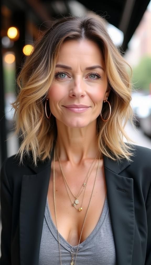 - Γιατί λειτουργεί: Τα layers προσφέρουν κίνηση στα μαλλιά που ίσως έχουν χάσει την πυκνότητά τους, ενώ οι αφέλειες τύπου curtain bangs «κρύβουν» διακριτικά τις λεπτές γραμμές στο μέτωπο.