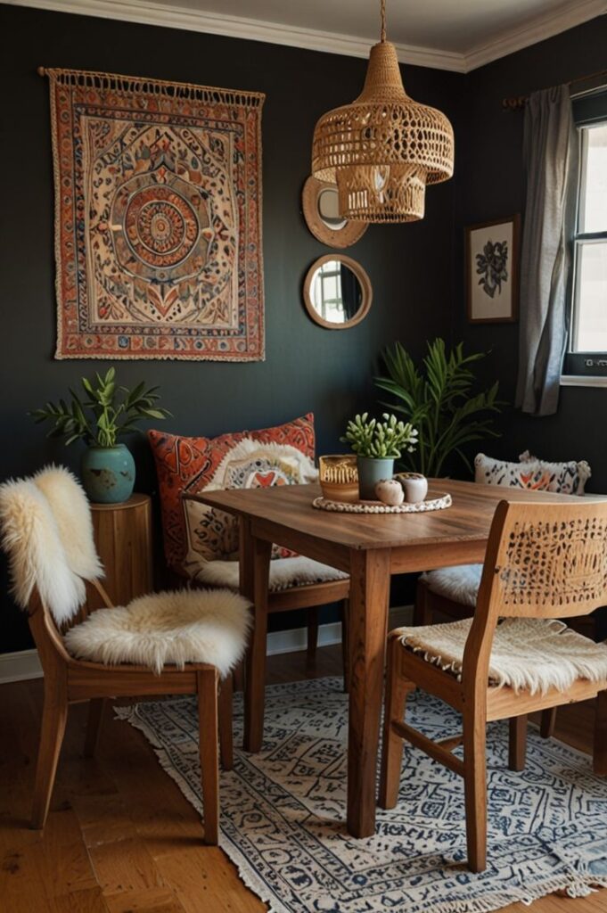 Το Boho (Bohemian) στυλ είναι χαλαρό, ανεπιτήδευτο και γεμάτο ζωή. Όταν εφαρμόζεται σε μια μικρή τραπεζαρία, ο στόχος είναι να δημιουργήσουμε μια “φωλιά” (cozy nook) που να δείχνει φιλόξενη και όχι παραφορτωμένη.