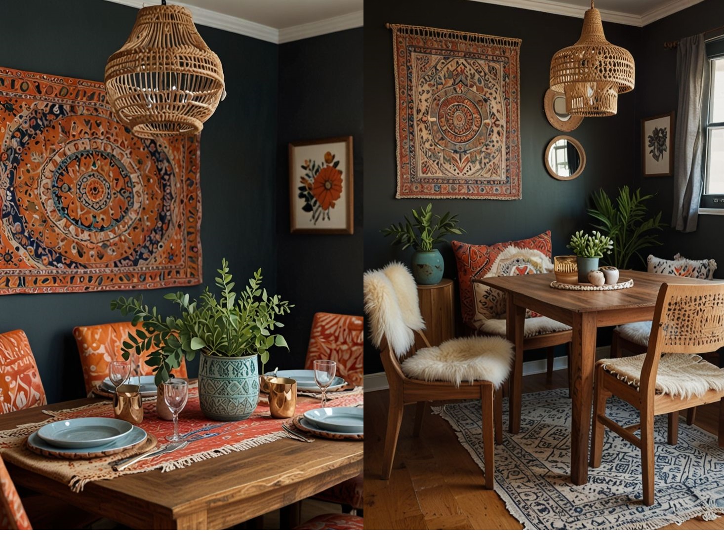 Το Boho (Bohemian) στυλ είναι χαλαρό, ανεπιτήδευτο και γεμάτο ζωή. Όταν εφαρμόζεται σε μια μικρή τραπεζαρία, ο στόχος είναι να δημιουργήσουμε μια “φωλιά” (cozy nook) που να δείχνει φιλόξενη και όχι παραφορτωμένη.