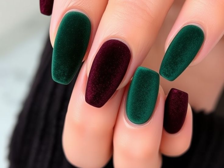 Η νέα εκδοχή των velvet nails είναι πιο παιχνιδιάρικη και τολμηρή από ποτέ. Εκτός από το κλασικό σιελ ή ασημί βελούδο, φέτος βλέπουμε αποχρώσεις όπως: