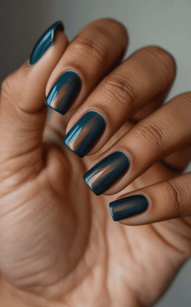Το μπλε του μεσονυχτίου έρχεται να αντικαταστήσει το κλασικό μαύρο, προσφέροντας βάθος και πολυτέλεια χωρίς να δείχνει σκληρό. Είναι ιδανικό για minimal, chic εμφανίσεις και ταιριάζει σχεδόν με όλα.Αν θες ένα touch πιο τολμηρό, πρόσθεσε λεπτή ασημί γραμμή στα άκρα ή διάφανο glitter top coat για ένα “παγωμένο” αποτέλεσμα.